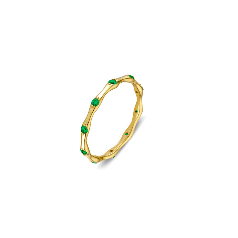 14ct Gold Plated Sterling Silver Abstract Shape Band Ring with Emerald Cubic Zirconia Details