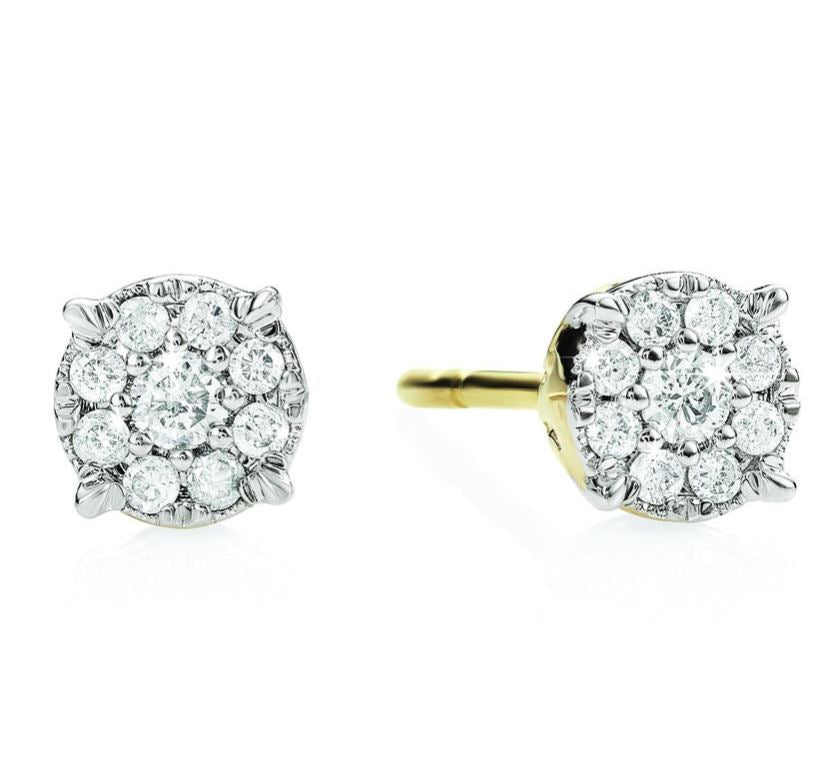 9ct Yellow Gold Total Diamond Weight 0.25ct Halo Cluster Stud Earrings