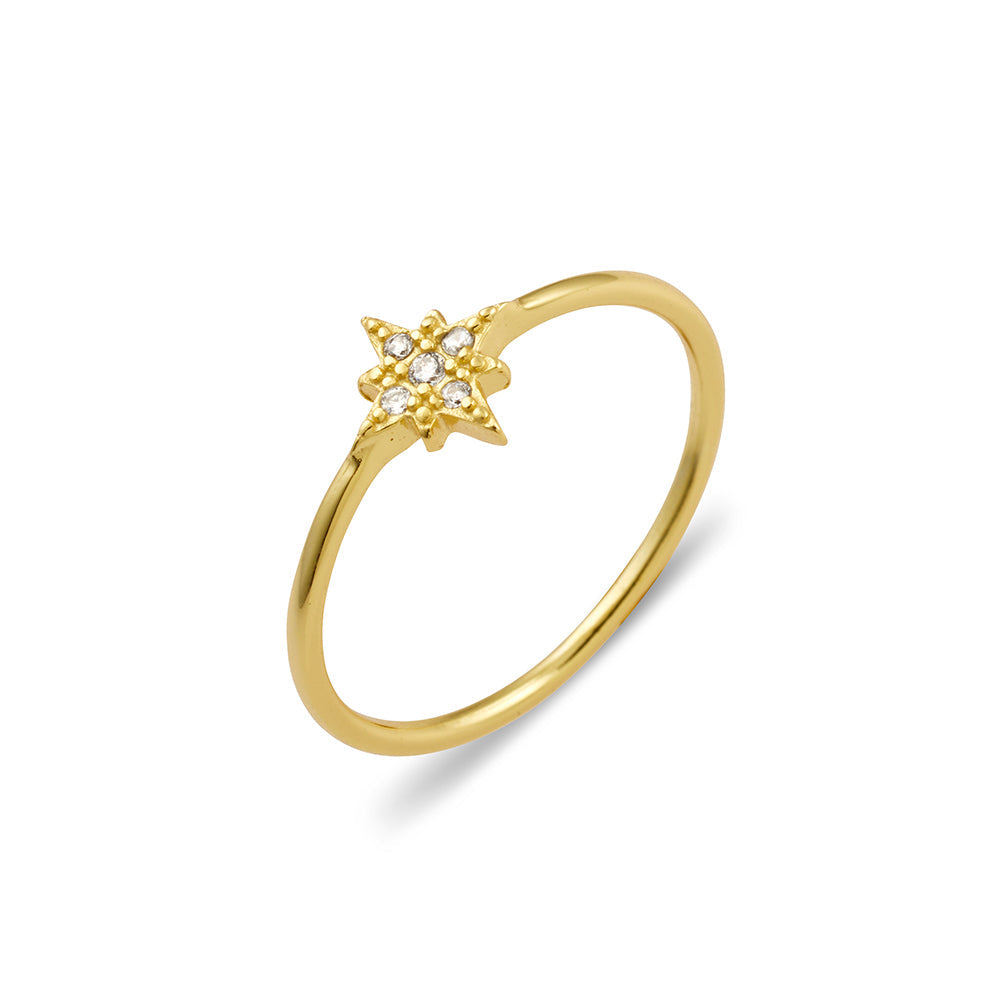 14ct Gold Plated Sterling Silver Fine Cubic Zirconia Northern Star Ring