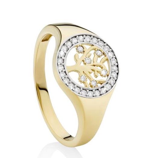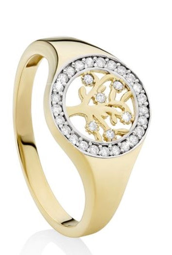 9ct Yellow Gold White Cubic Zirconia Tree of Life Ring