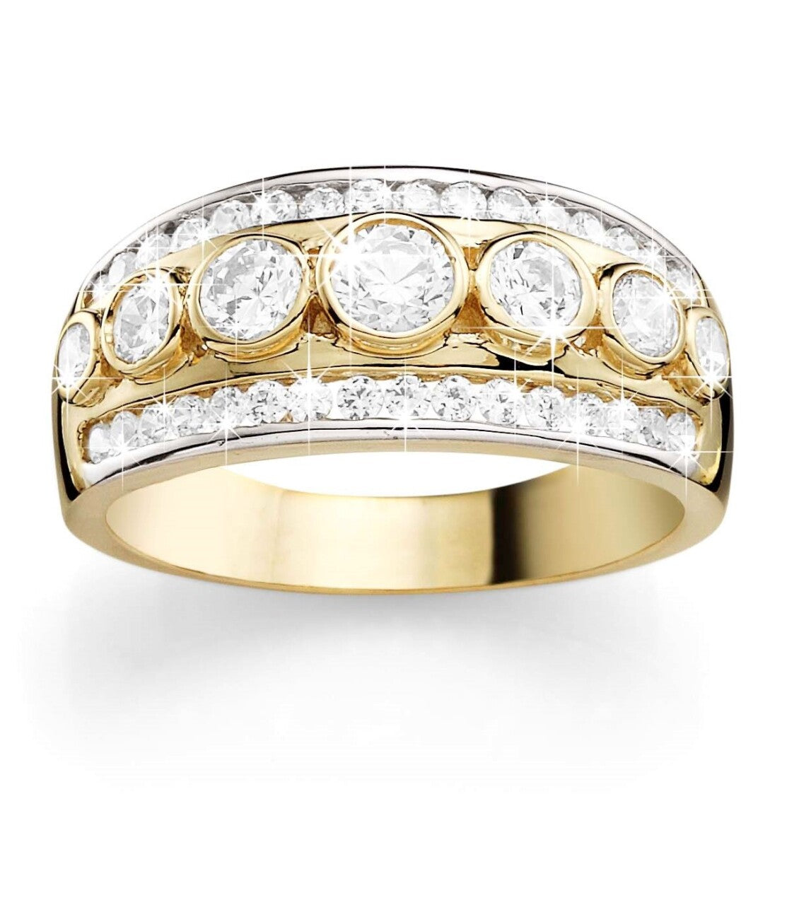 9ct Gold Triple Row Bezel & Channel-Set Cubic Zirconia Ring